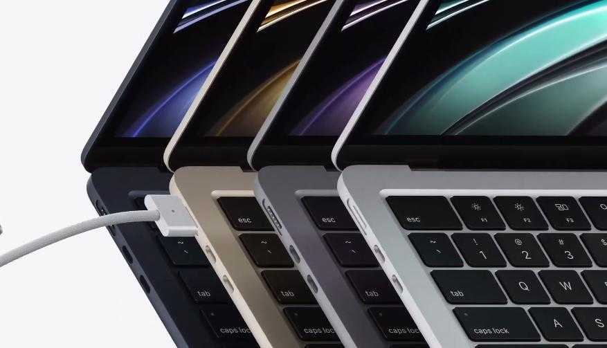 Первым Мак на новом чипе М2 стал MacBook Air, ведь это самый продаваемый компьютер Apple. Он получил новый дизайн со строгими алюминиевыми гранями. Толщина 11,3 мм и вес чуть больше 1,2 килограмм.