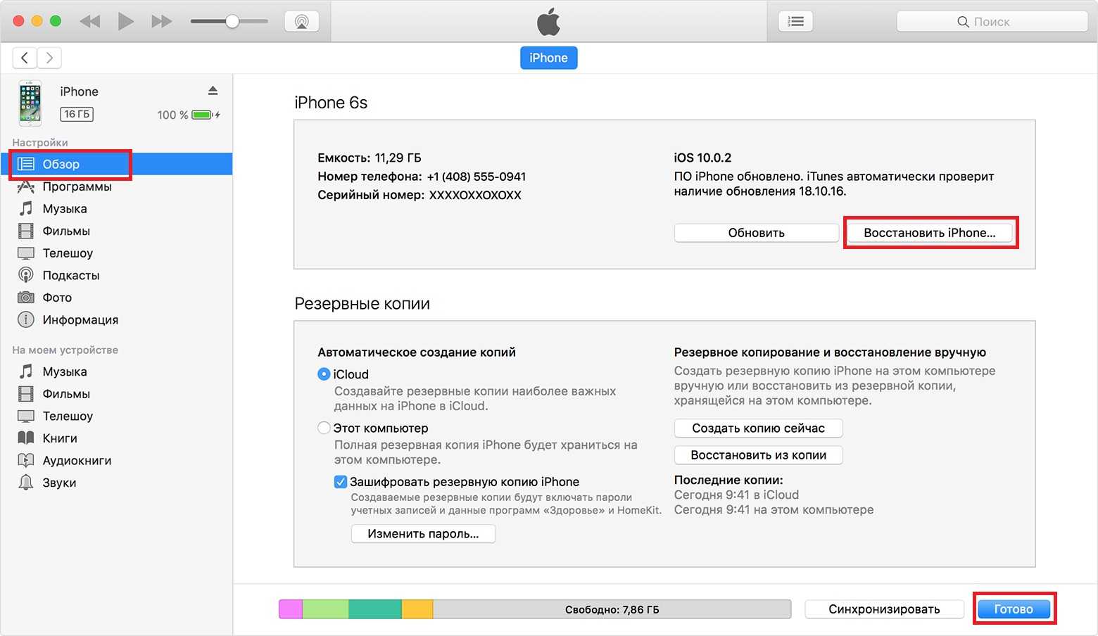 4 iTunes — подключите iPad к ПК, тапните по иконке девайса, когда он определится, далее вкладку «Обзор» и кнопку «Восстановить iPad»