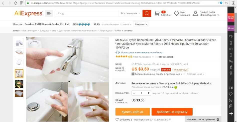 В России такой вид хозяйственных губок встречается редко и стоит достаточно дорого. Из Китая вы может заказать по небольшой цене. Губка является прекрасным помощником в быту, отчищая все – кухонные поверхности, кафельную плитку, раковины от жира, ржавчины, грязи и пр.