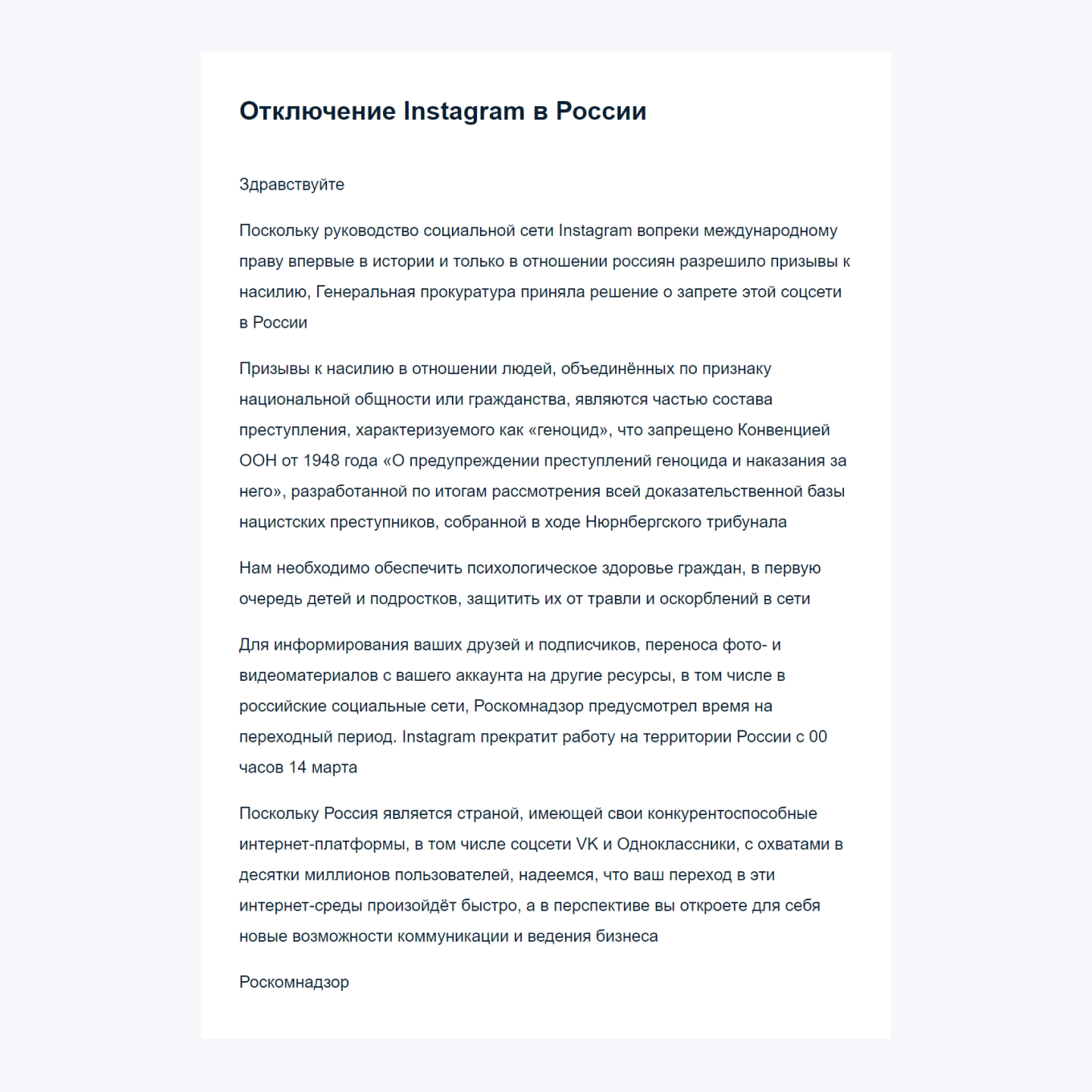 Роскомнадзор отправил письма пользователям и рекомендовал переходить на российские площадки: ВКонтакте и Одноклассники