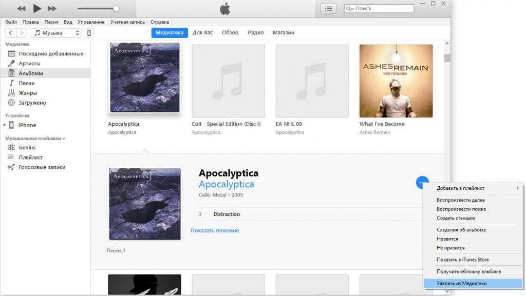 Если вы не хотите полностью очищать свою богатую медиатеку, а желаете избавиться только от отдельных композиций, то описанные выше методы вам не подходят. Для удаления одной или нескольких песен есть два других способа, выбор которых зависит от того, сортируете ли вы песни по альбомам.