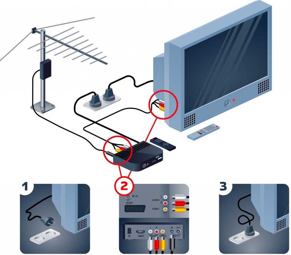 - Соединить ресивер и телевизор посредством провода HDMI, входящего в комплект.