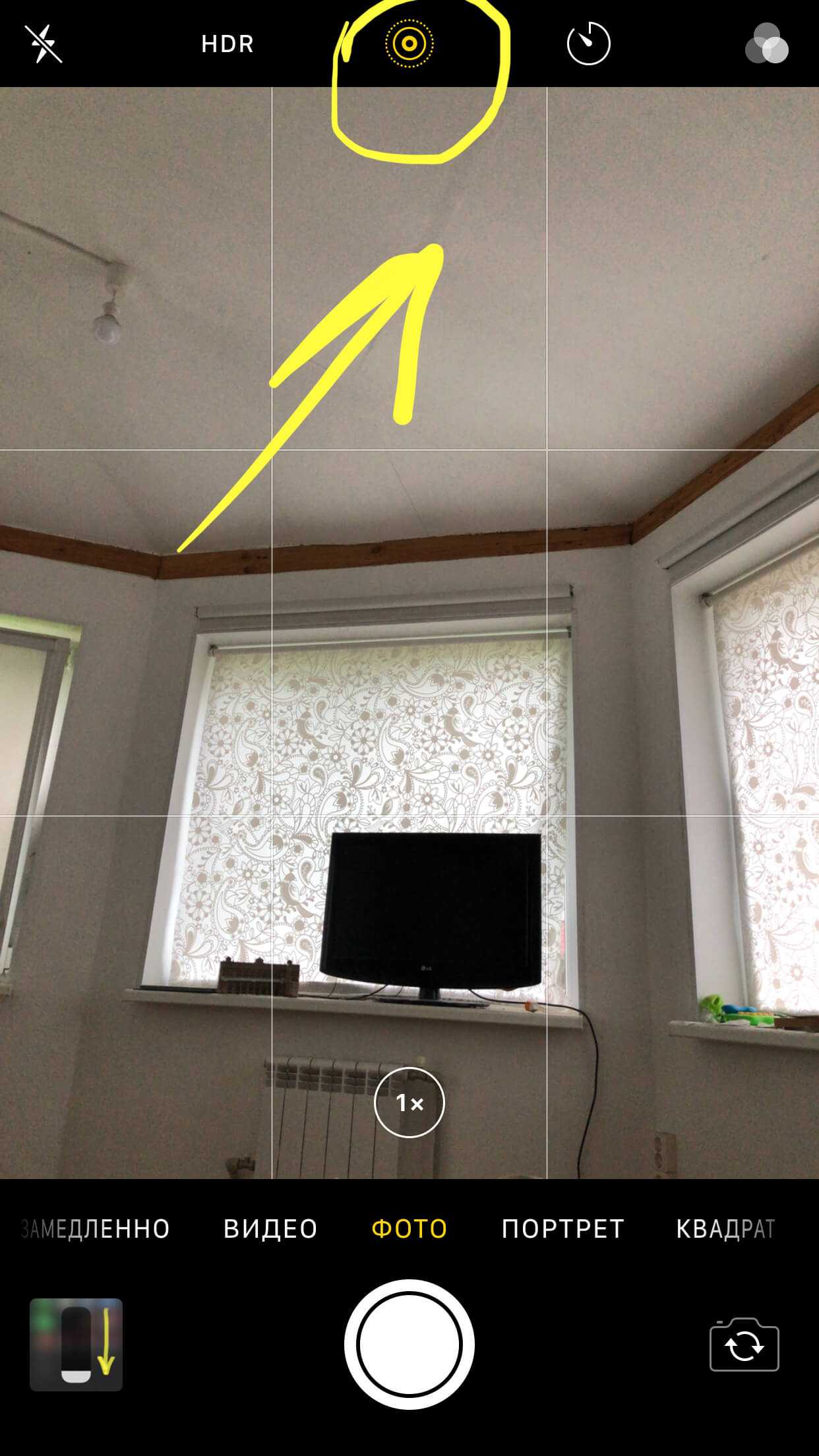 Рисунок 7. Значок желтых кружков вверху дисплея на Камере значит, что режим Live Photo активен, и нажатие кнопки затвора функционирует беззвучно.