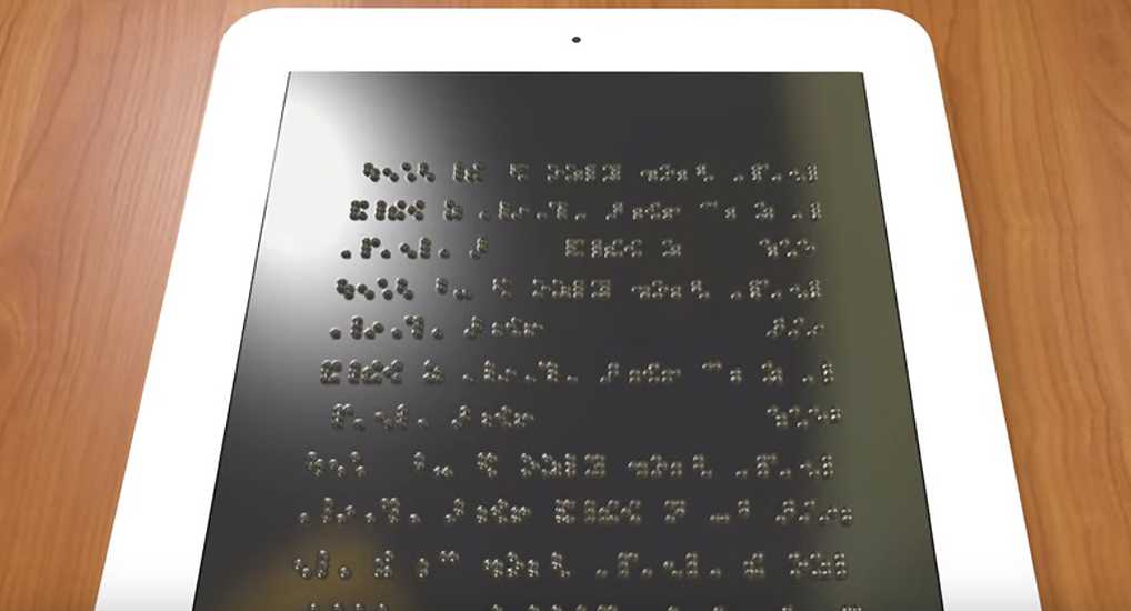 Три года назад ученые из университета Мичигана рассказали о новом планшете, экран которого состоит из маленьких микрофлюидных пузырьков. Они надуваются и слегка приподнимаются, когда в них под давлением подается жидкость. Из пузырьков образуются символы, которые легко распознают незрячие люди, знакомые со шрифтом Брайля. Это стало настоящим прорывом, так как слабовидящим больше не нужно было подключать к планшетам устройства, который делают понятной информацию с экрана. На выходе, правда, получается не полноценный мультимедийный гаджет, а что-то вроде электронной книги.