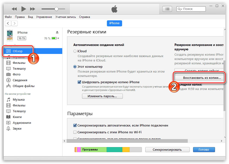 Перенос данных через iTunes