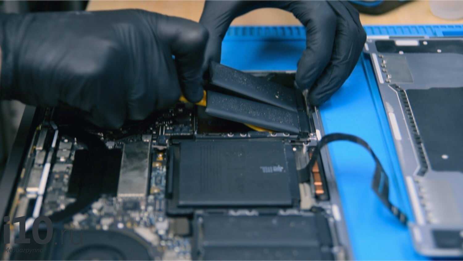 Убедившись, что остальные компоненты не пострадали, они аккуратно отключают аккумулятор от материнской платы.
