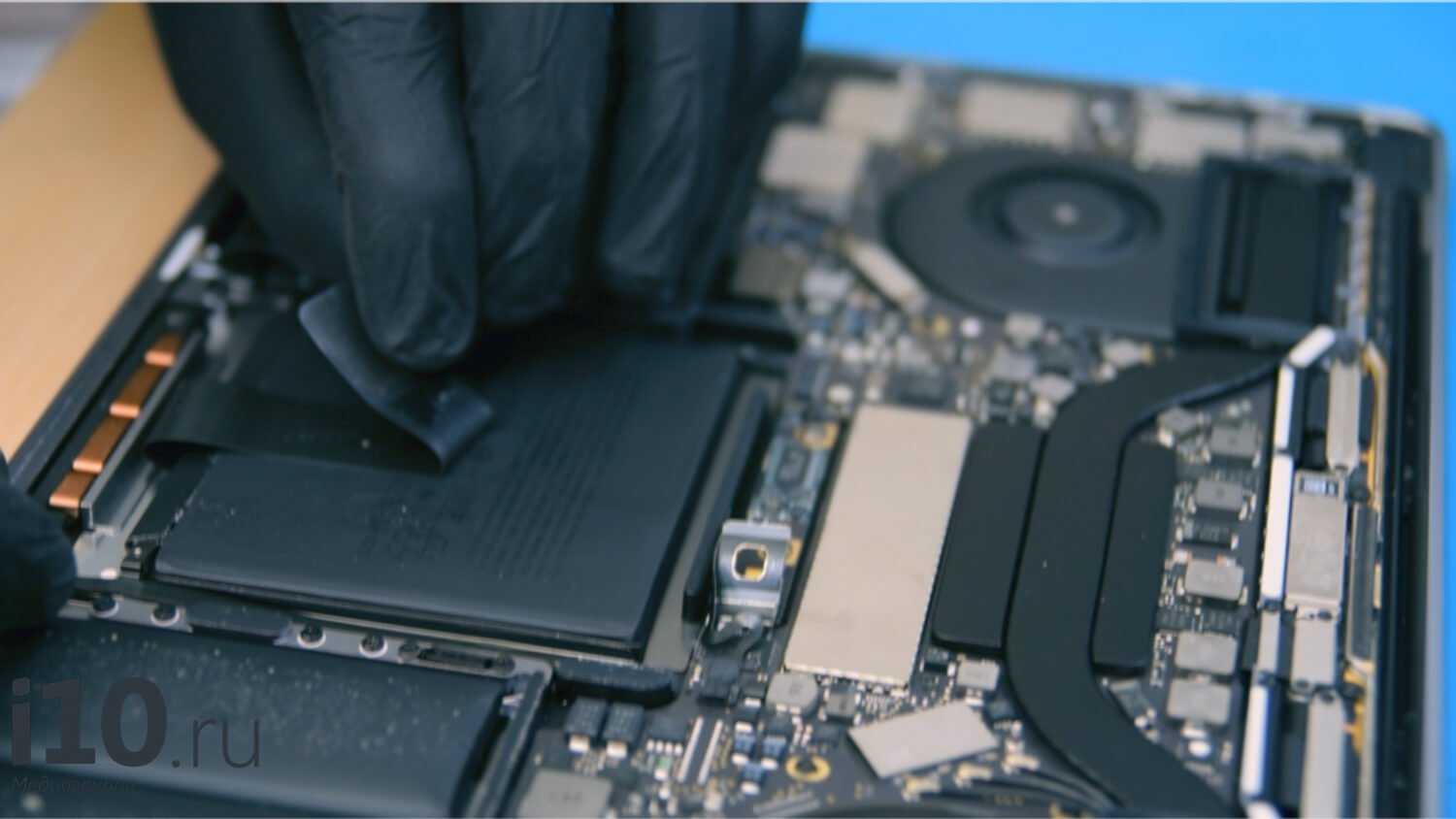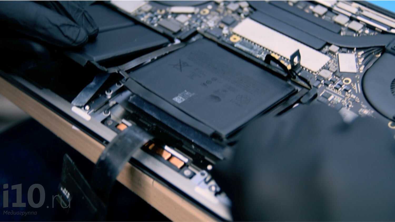 Теперь самое сложное — отлепить батареи. MacBook Pro 2018 15″