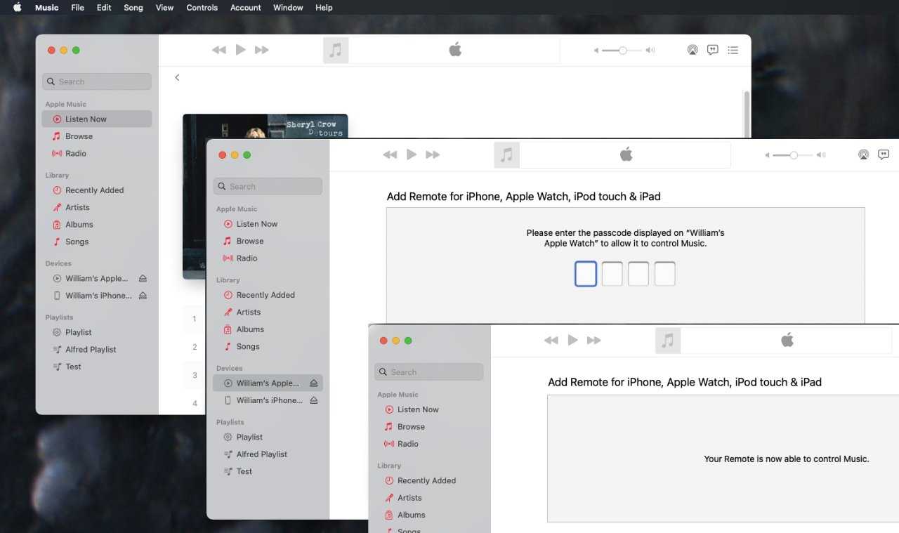 Затем снова нажмите Добавить устройство , возможно, бросая соль через плечо, и повторите шаг, щелкнув имя часов в разделе «Устройства» приложения Mac Music.