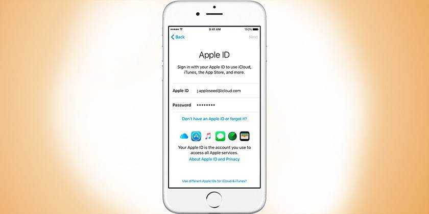 Настройка и регистрация Apple ID