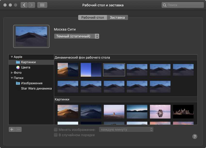 - Динамические изображения рабочего стола будут менять обстановку в течение дня в зависимости от времени. Однако вы не можете выбрать собственное изображение для динамического рабочего стола.