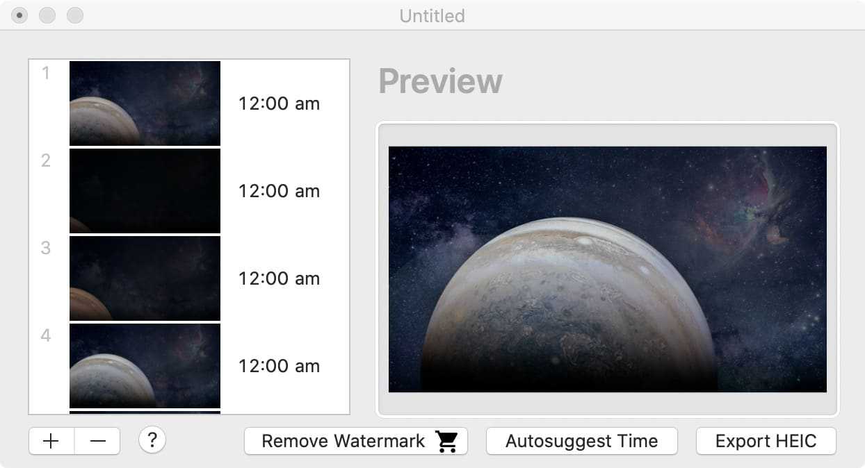 После того как вы добавили изображения, нажмите кнопку «Экспорт HEIC», чтобы экспортировать динамические обои