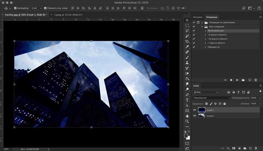 Мы взяли фотографию Москва-Сити и через Adobe Photoshop добавили на нее отдельным слоем по очереди все 16 градиентов в режиме наложения «Перекрытие».