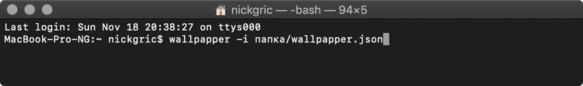 В данном случае «папка/wallpapper.json» — полный путь к файлу, который можно получить, перетащив его в окно «Терминала»