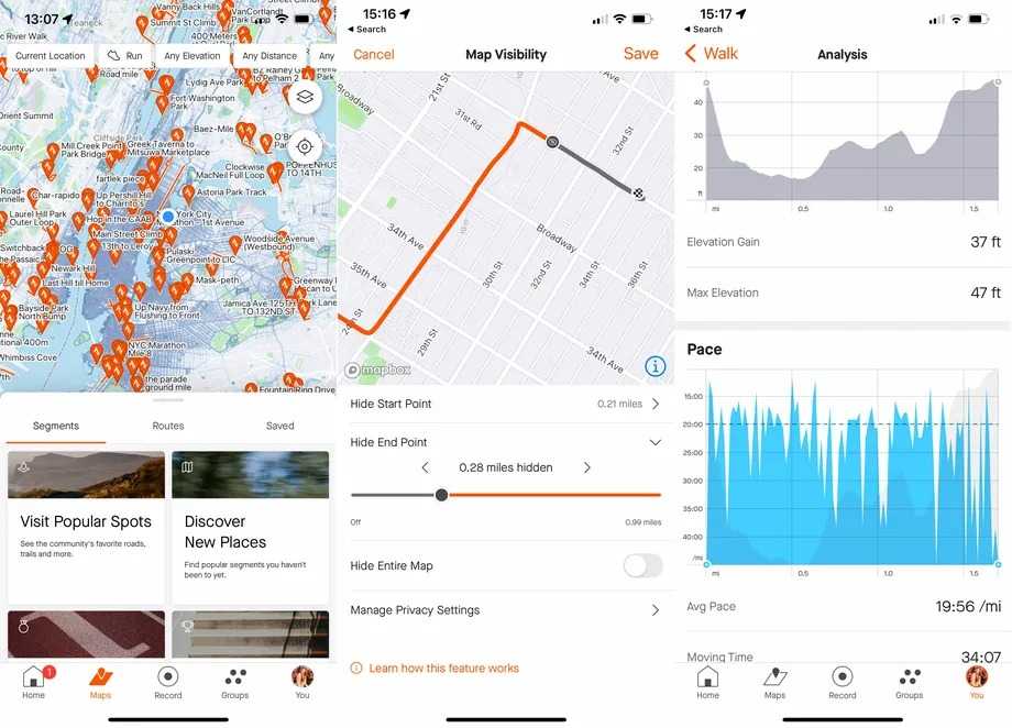 Для тех, кто хочет стать более активным, есть множество удобных приложений, и Strava – одно из них. Вам не придется покупать фитнес-трекер или смарт-часы (хотя вы можете подключить самые популярные модели к приложению). Strava поддерживает множество различных активностей, включая простую ходьбу, бег и велоспорт. Также его можно синхронизировать с другими подобными приложениями на вашем iPhone, превратив в единый центр для всех ваших упражнений. Помимо этого, здесь присутствуют интересные испытания, которые вы можете ставить самим себе, функции личной безопасности и различные методы отслеживания вашего прогресса тренировок.