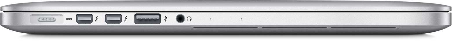 Слева направо: разъем питания, два порта Thunderbolt, порт USB-A и аудиовыход.