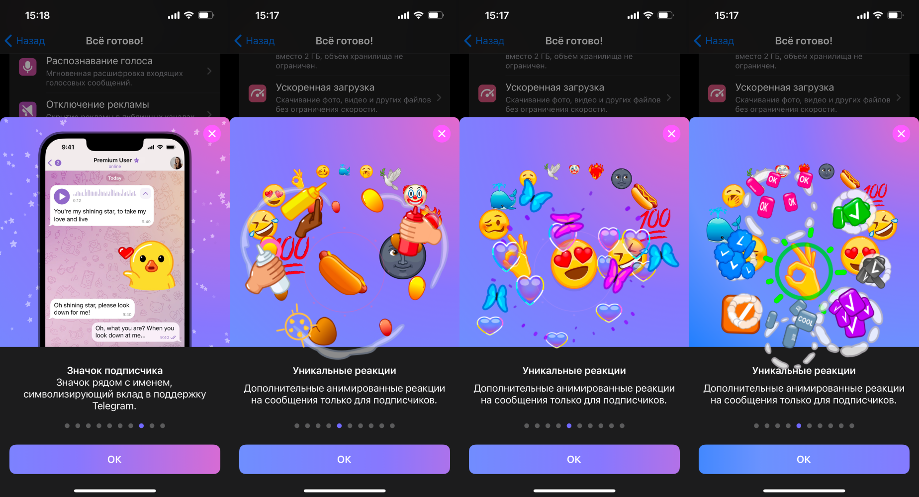 Как по мне, цена неоправданно высока. Из реально полезных функций здесь есть только встроенный переводчик голосовых сообщений в речь. А вот стикеры, новые реакции, отсутствие рекламы (которой и так почти нет) — это лишь повод оправдать такой высокий ценник.