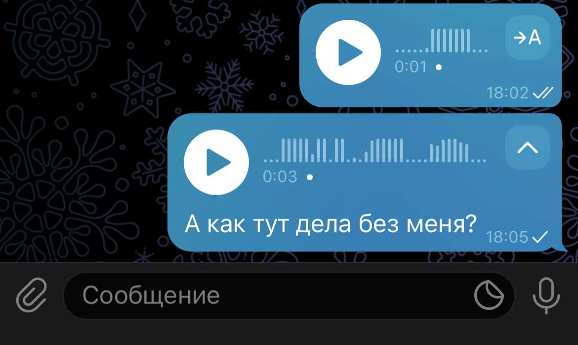 Если пользователю не хочется или нет времени для прослушивания прослушивать голосовых сообщений, то в подписке Premium необходимо выбрать кнопку расшифровки рядом с ним, чтобы получить текст аудиосообщения.