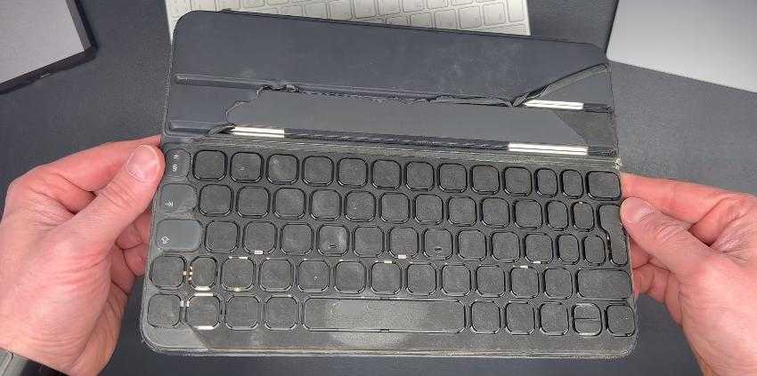 Во всем остальном клавиатура представляет из себя склеенные между собой слои основы и внешней оболочки. На примере Smart Folio могу сказать, что полиуретановая внешняя часть очень прочно приклеена к корпусу, и в целом виде ее снять просто невозможно.