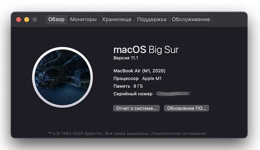 Первым делом устанавливаем нужную вам утилиту. Затем тыкаем на яблочко в левом верхнем углу, выбираем «Об этом Mac» и попадаем в «Отчёт о системе».