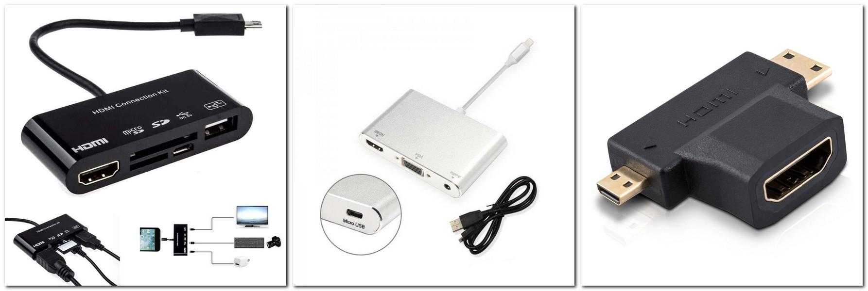 Пример переходников microUSB с портами нескольких типов для вывода видео и аудио