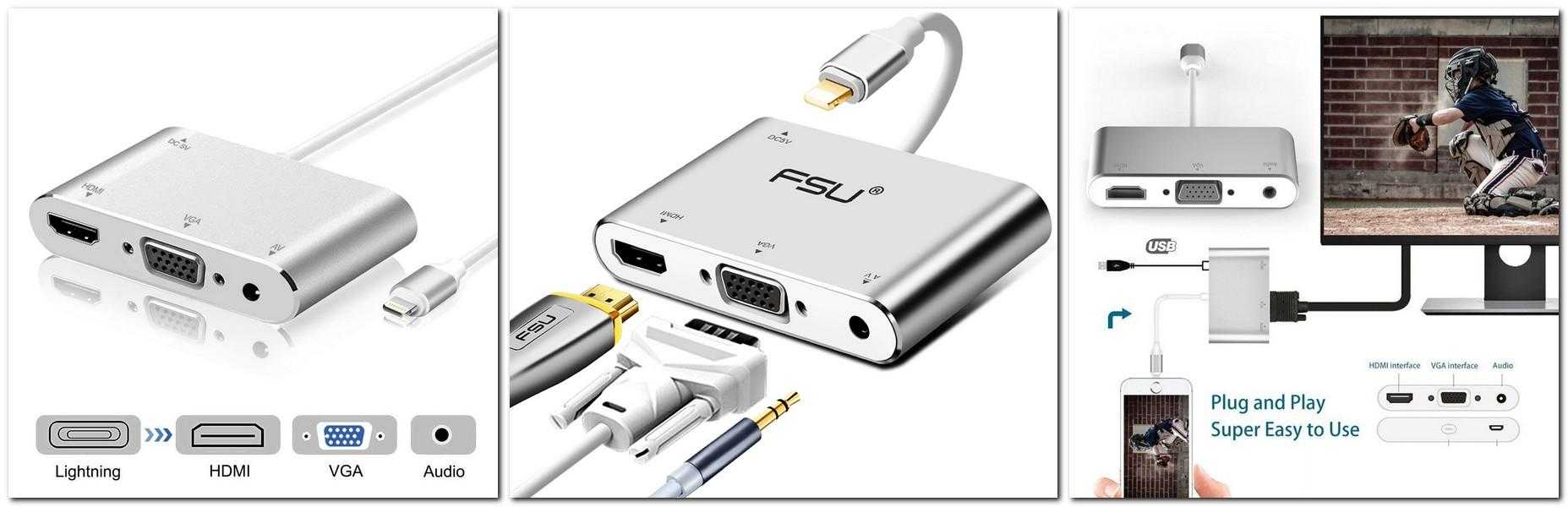 Это универсальный переходник для подключения смартфонов iPhone и других гаджетов Apple к любым устройствам, выводящим звук и изображение.