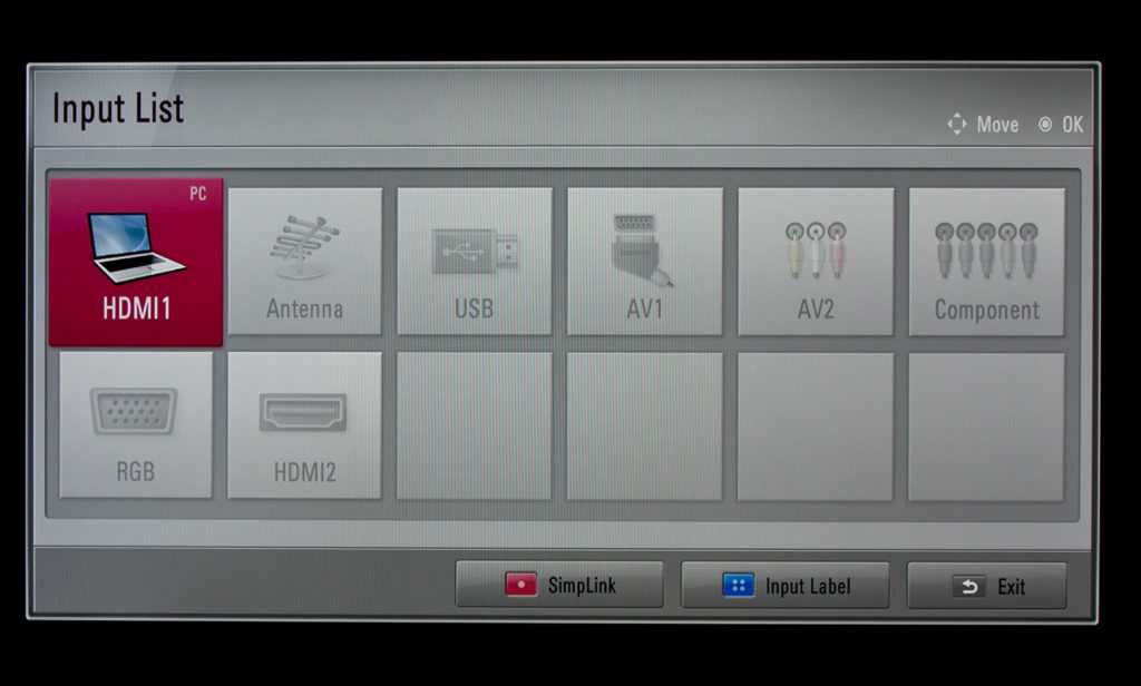 - В перечне источников данных на ТВ-панели выбрать HDMI.