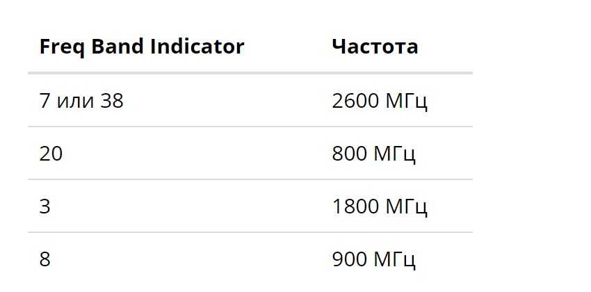 Результат — напротив строки «Freq Band Indicator» будет отображаться значение частотного диапазона.