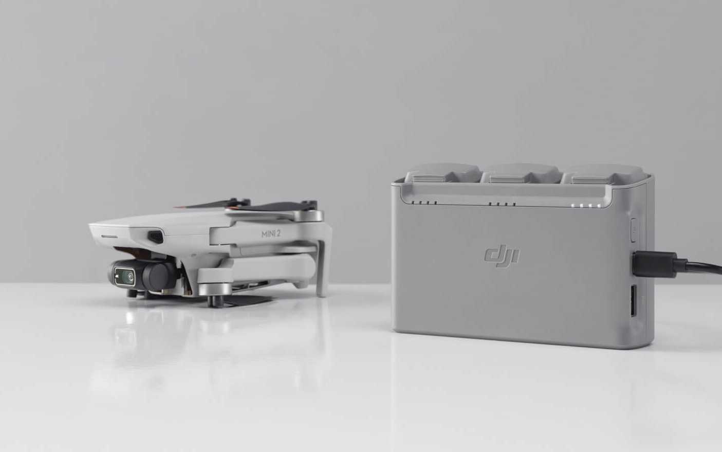 Стандартный комплект вообще не имеет зарядного устройства. Связано это с тем, что разработчик потрудился над возможностью зарядки пульта и дрона практически от любого USB-зарядного устройства в том числе в режиме QuickCharge (DJI Mini 2 поддерживает протоколы быстрой зарядки QC и USB PD, а также поддерживает входную мощность до 29 Вт).