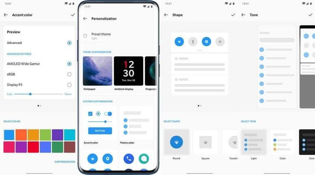 Быстрые настройки вызываются долгим нажатием, как и в других вариациях Android. Пользователю доступны такие возможности, как смена фона для экрана блокировки и рабочего стола, добавление виджетов и персонализация внешнего вида. Можно также включать и отключать переход к быстрым настройкам жестом, а также настраивать панель уведомлений, встраивая кнопки, выбирая формы значков и меняя их расположение.