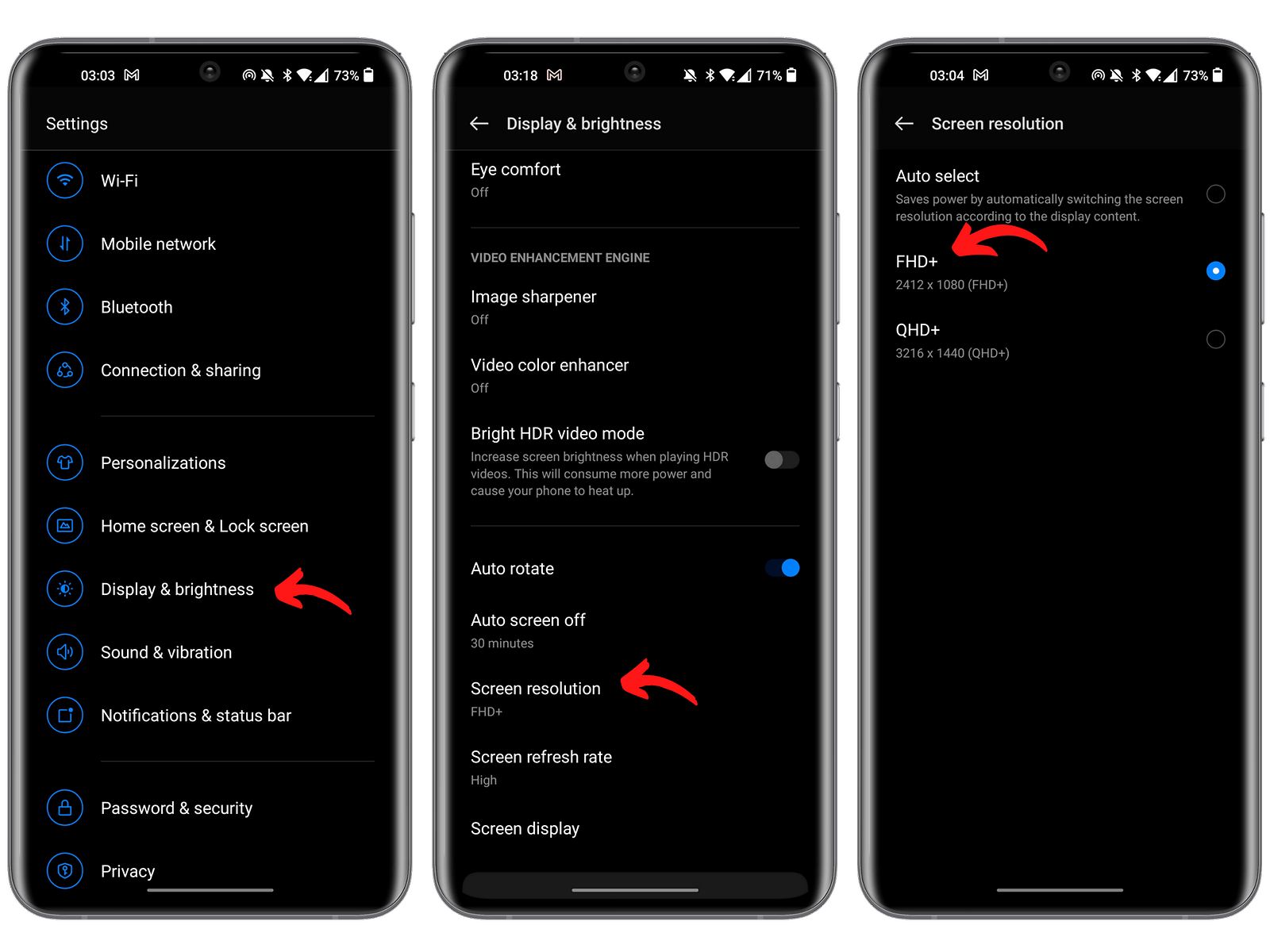 Флагманы OnePlus используют экраны AMOLED с разрешением до QHD+. Многие предпочитают снижать разрешение до Full HD+. Этого хватает для просмотра большей части контента и снижает нагрузку на аккумулятор.
