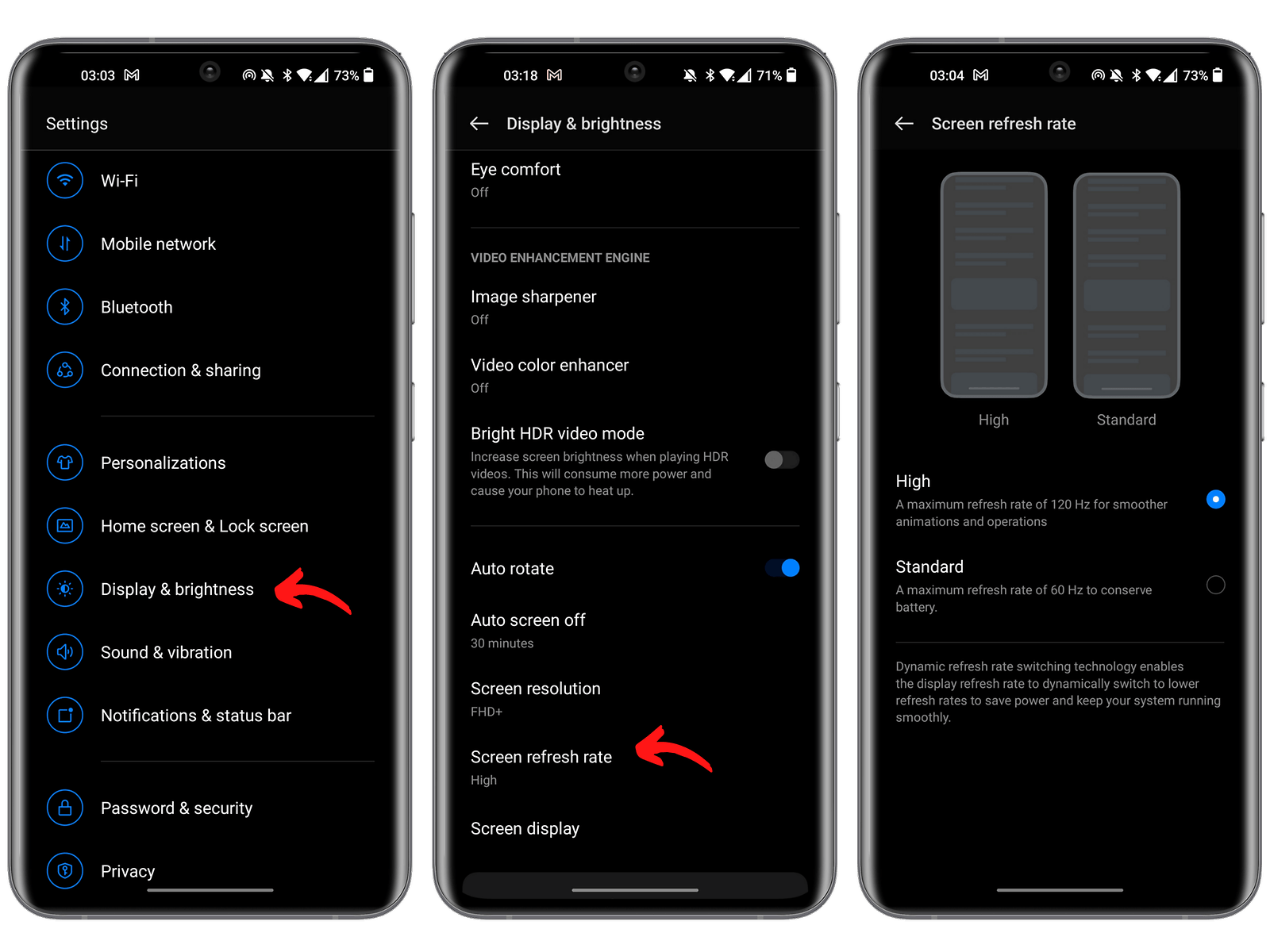 Вы можете пользоваться не всеми возможностями устройства, но экраном вы будете пользоваться всегда. Поэтому и настраивать его нужно в первую очередь. Мы рассмотрим четыре настройки: частоту обновления, чёткость, тёмный режим и колориметрию.