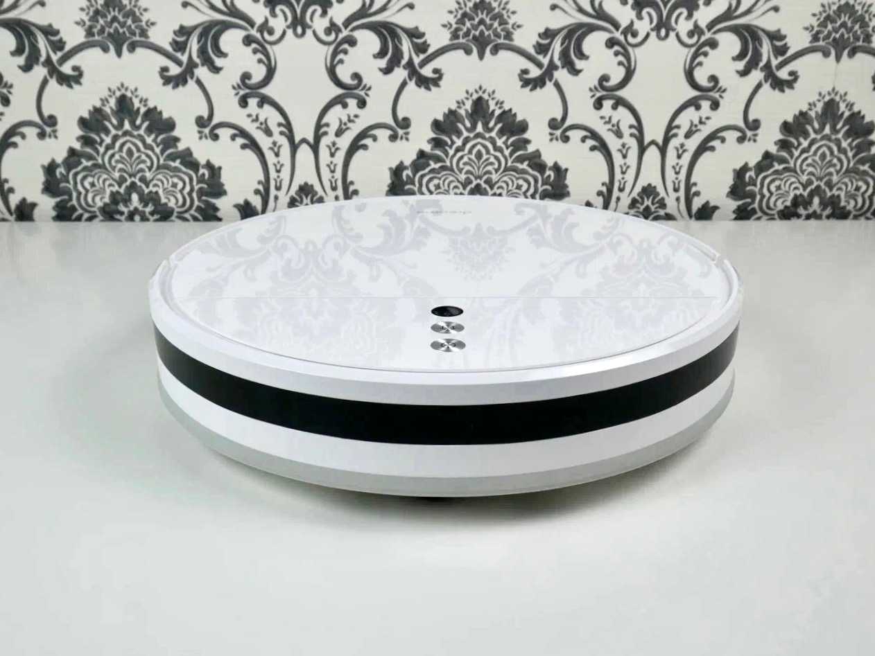 На самом роботе явно не экономили. Добротный пластик, чёткая подгонка узлов, ни люфтов, ни зазоров, да и весит пылесос прилично – почти 4 кг, что как бы намекает на качество используемых деталей. Дизайн такой же, как у Mijia 1C: таблеточный корпус белого цвета, одна торцевая щёточка, обзорная камера. Единственное отличие – более красивые, блестящие кнопочки: первая запускает уборку, вторая возвращает робота на базу.