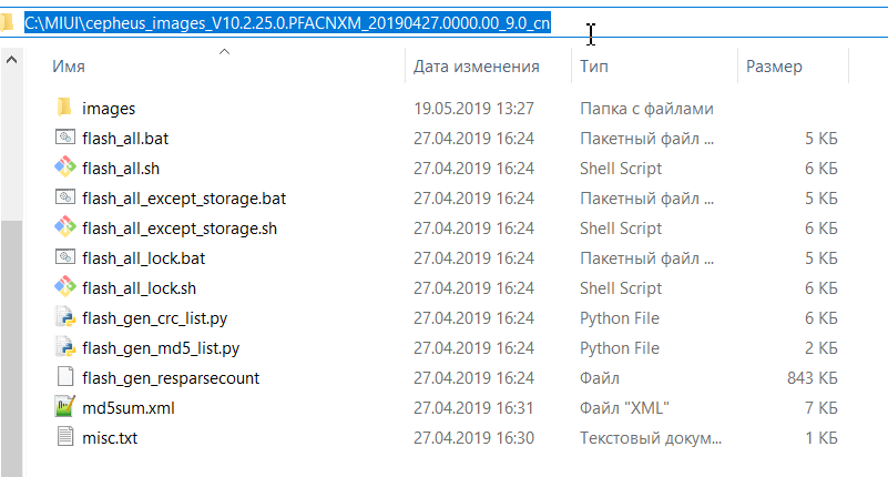 Распаковываем скачанную прошивку на диск C:/ , например, в папку MIUI.