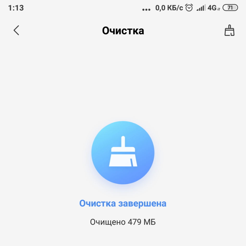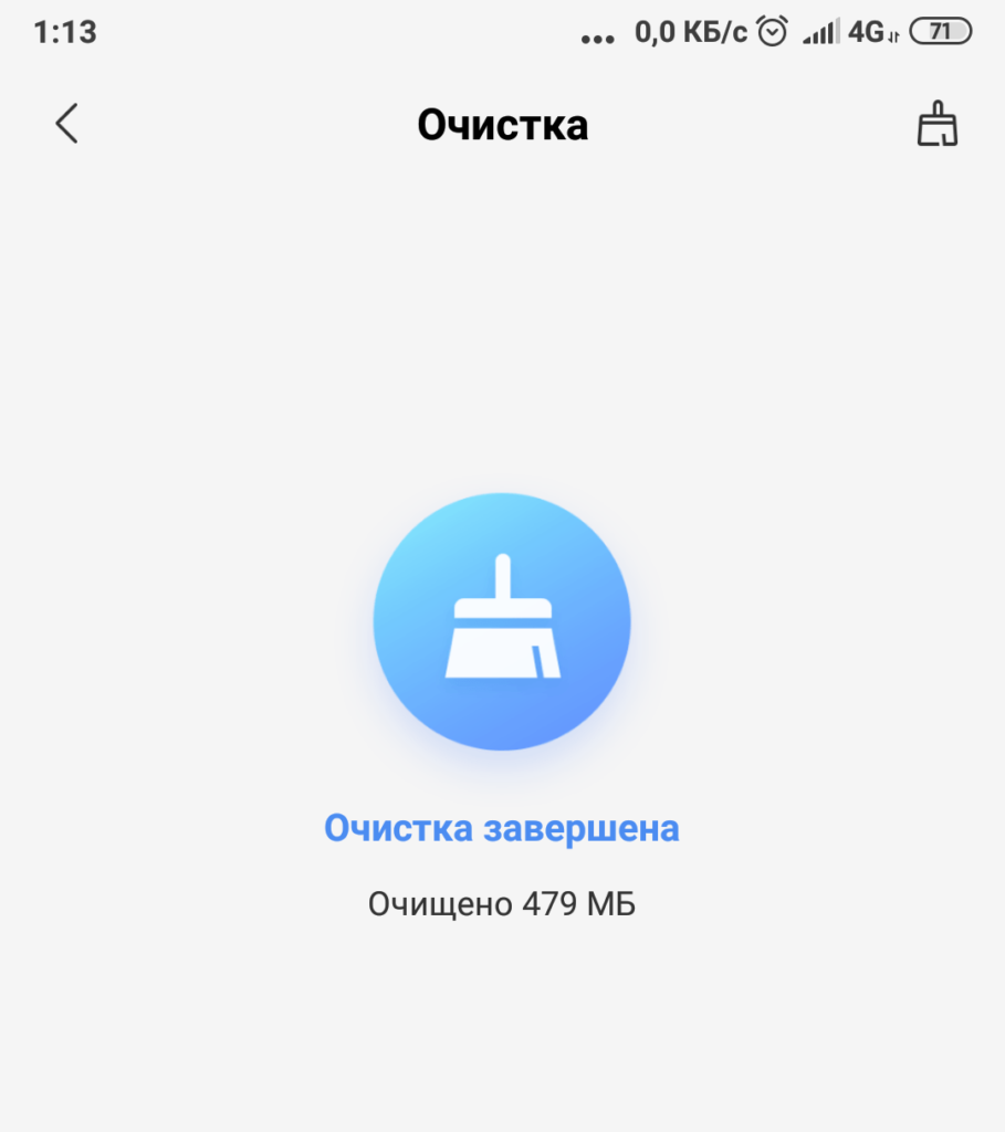 2. Приложения “Очистка памяти”. Стандартная программа для оптимизации системы, которая удаляет кэш. Чтобы запустилась очистка, достаточно нажать на иконку.