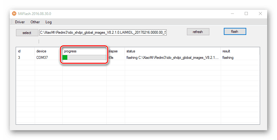 Подключите смартфон к ПК через USB и войдите в MiFlash. Далее при помощи кнопки Browse нужно указать папку, где содержится разархивированный файл скачанной прошивки для режима Fastboot. Если смартфон распознан MiFlash, останется лишь нажать кнопку Flash для обновления.