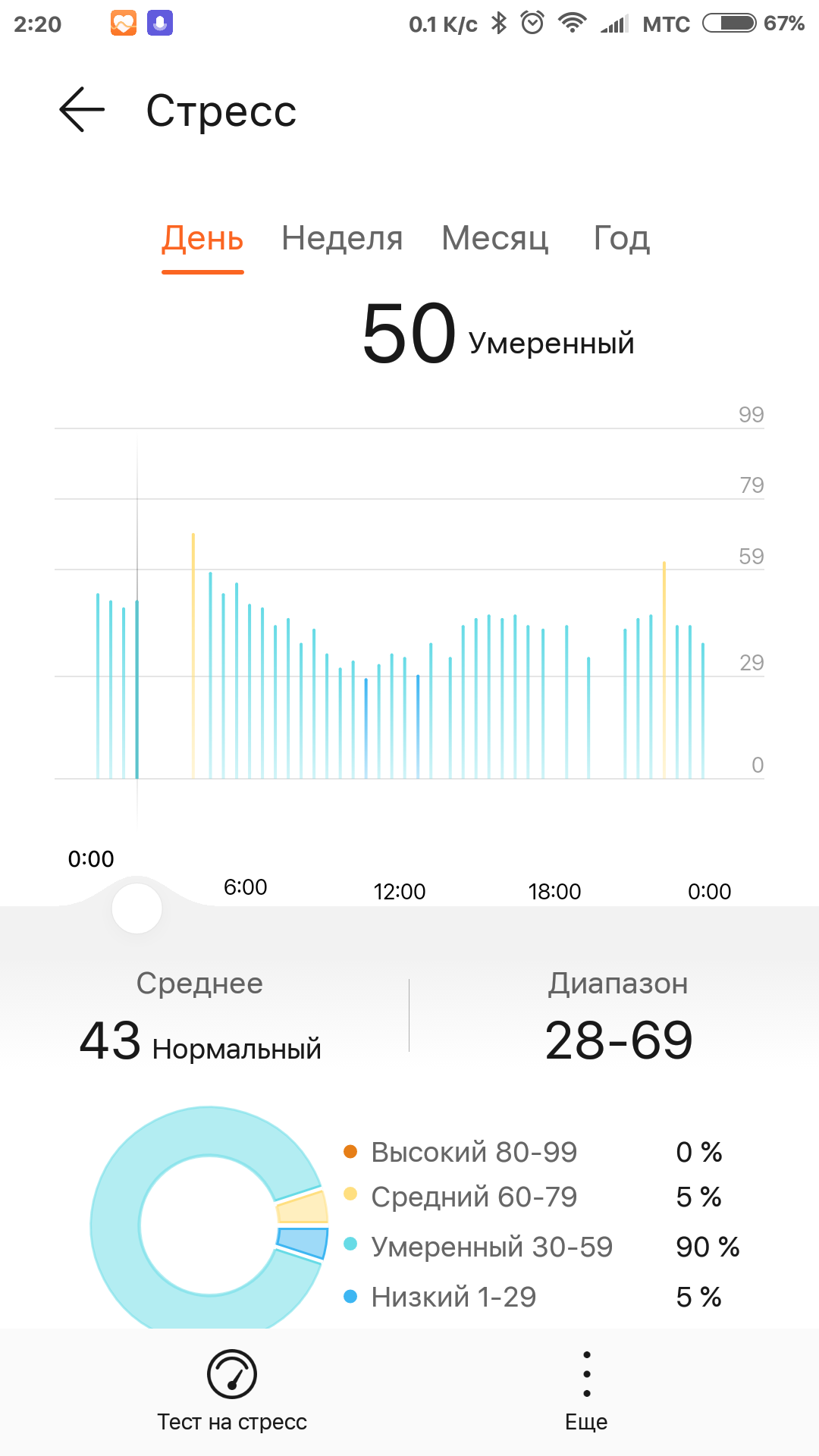 В Huawei Band 6 есть опция измерения уровня стресса. Для начала пользователю предстоит откалибровать функцию. Для этого вы должны отвечать на вопросы вроде «чувствуете ли вы смысл жизни» и «приходится ли вам постоянно испытывать беспокойство». После вопросов опция активируется автоматически. Мониторинг доступен на экране самих часов и в приложении Huawei Health.