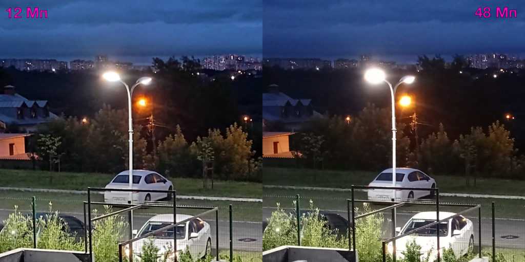 По умолчанию девайс снимает в разрешении 12 Мп. Полные 48 Мп доступны отдельно. К ним прибегать особого смысла нет — картинка чуть резче, но заметно это только при 100-процентном приближении.