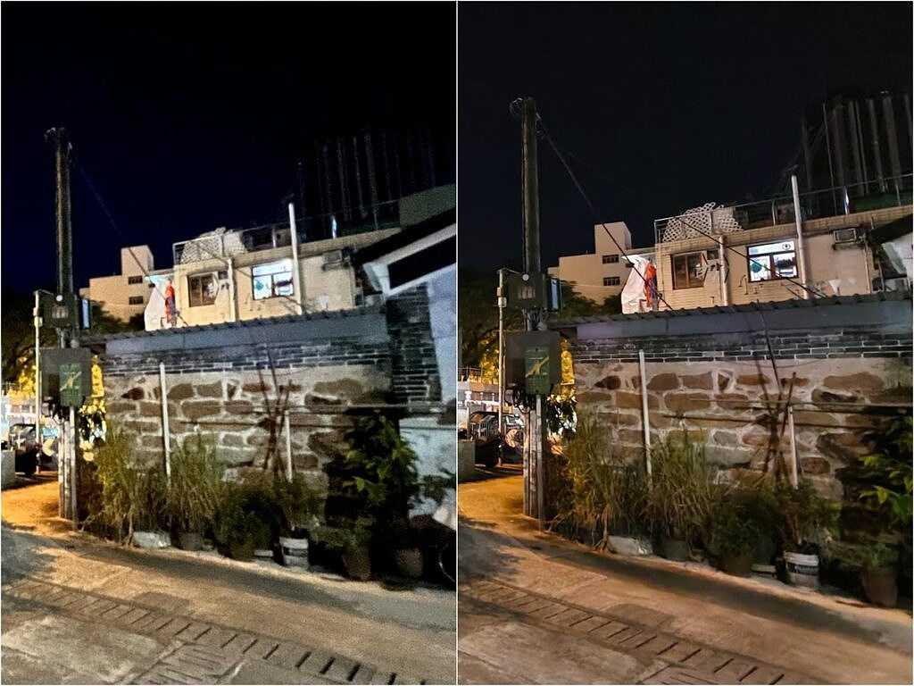 This gap in image integrity widens at night. Not only is Vivo’s shot almost always sharper, but Vivo’s shot is usually properly exposed without suffering from the over-exposure problem of the iPhone 13 Pro images too. Below are two ultra-wide shots of a Chinese village, captured at night.