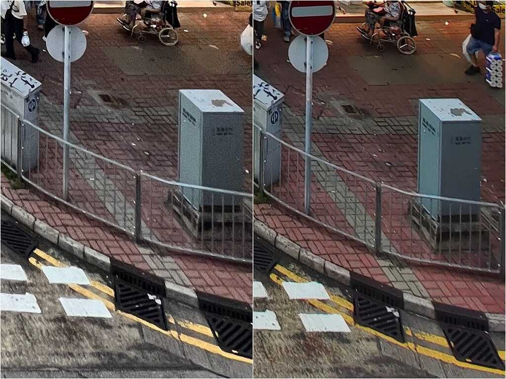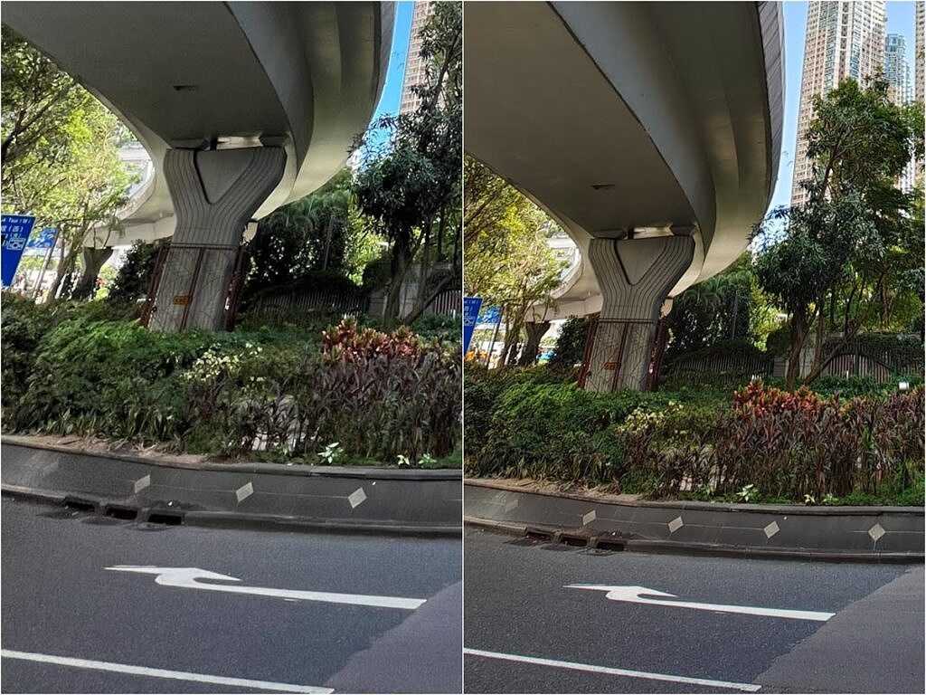 There’s noticeably more noise in the corners of the iPhone 13 Pro’s ultra-wide shot. This is the case if we zoom in 100% to the other set of daytime ultra-wide shots, of the highway overpass too. Vivo’s shot keeps the texture of the road and highway overpass cement block better. It’s just a sharper image all around.