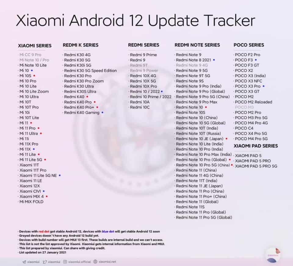 Согласно тому, что сяомиуи, у нас сегодня есть полный список его устройств Xiaomi — RedMi — Поко ожидается получить обновление в Android 12.