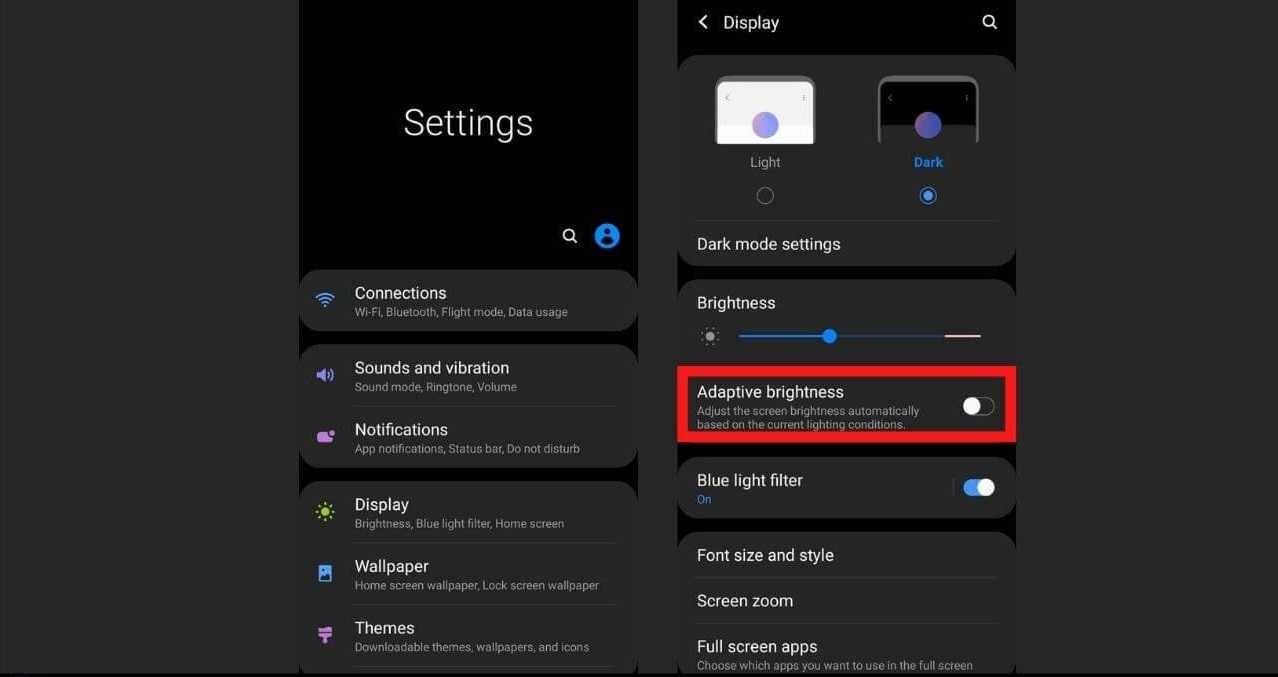 Вы можете включить функцию автоматической яркости, чтобы уменьшить разряд батареи на Galaxy S21, S21 Plus и S21 Ulta. Эта функция автоматически увеличивает яркость экрана, когда вы находитесь вне помещения при ярком дневном свете, и снижает ее, когда вы находитесь в зоне с недостаточным окружающим освещением.