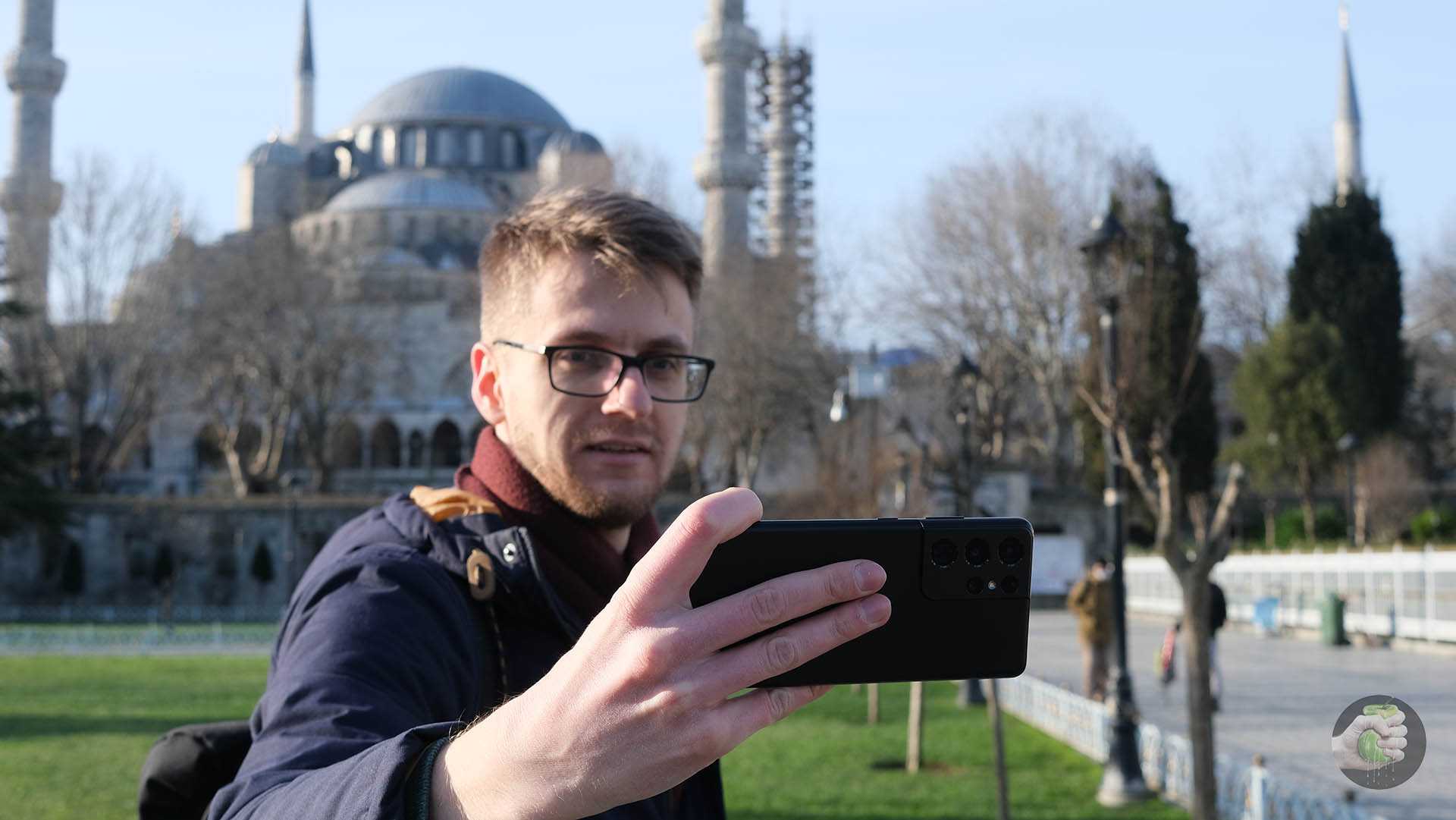 Серию S21 посетил новый сценарий — кинорежим. Съёмка ведётся одновременно на переднюю и одну из задних камер. При этом ты в реальном времени можешь видеть, как выглядит картинка сразу на всех четырёх модулях. Переключение между ними не сказать, чтобы бесшовное, но побаловаться можно. Огорчает лишь низкое качество съёмки — 1080p и 30 кадр/с.