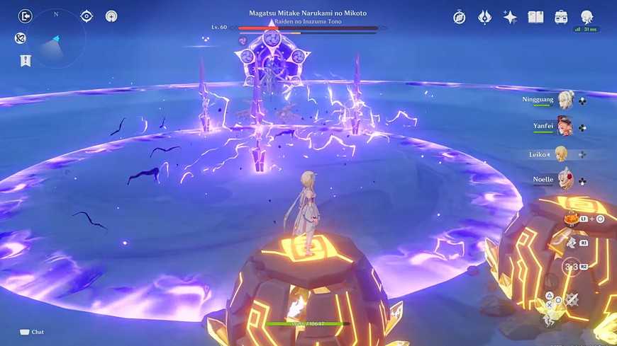 Вариант с Гео Путешественником являлся самым простым, так как по факту особо ничего и делать не нужно было. Требовалось в начале раунда установить одну из бочек при помощи элементального навыка «Меч звездопада» , залезть на нее и просто дожидаться окончания атаки.