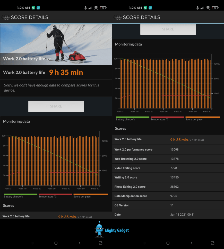 For the Mi 11, it has scored the lowest since I reviewed the Realme X50 Pro. The Realme X50 Pro has a much smaller batter though.