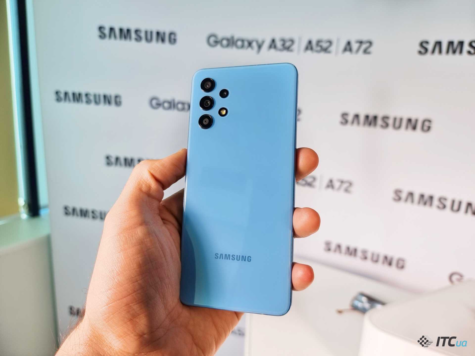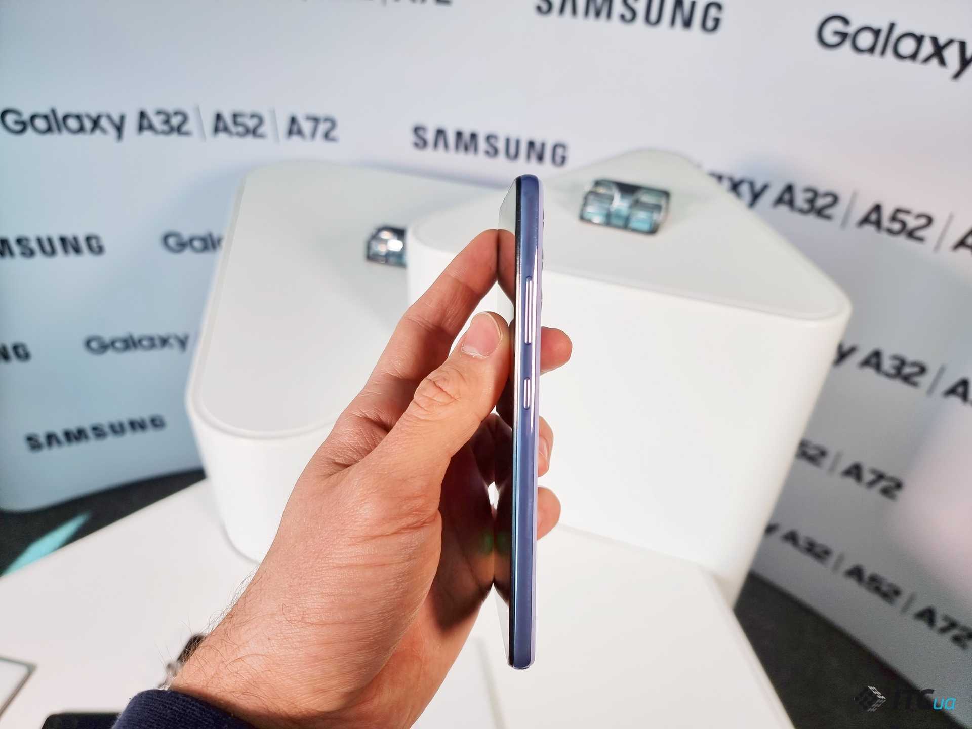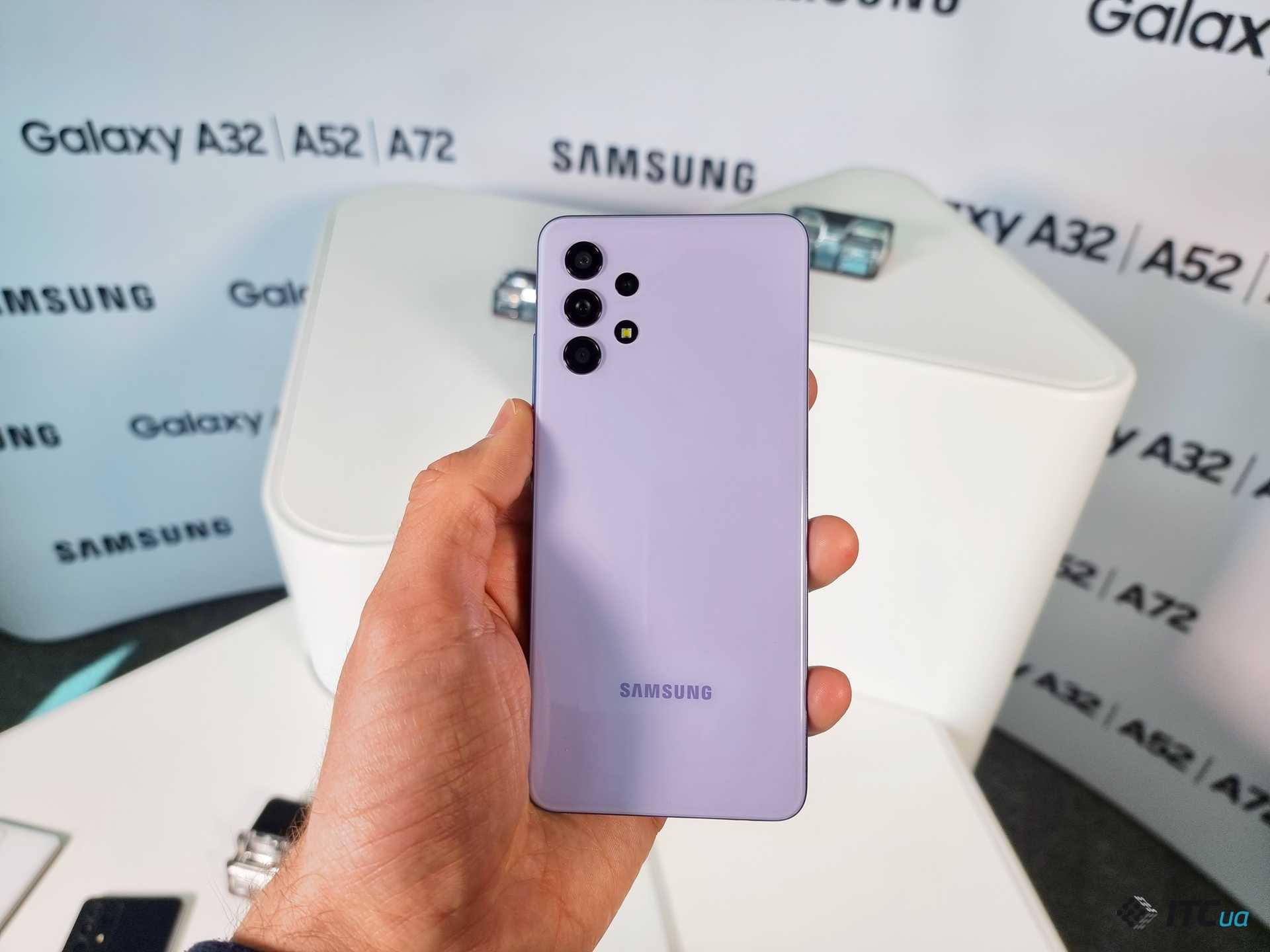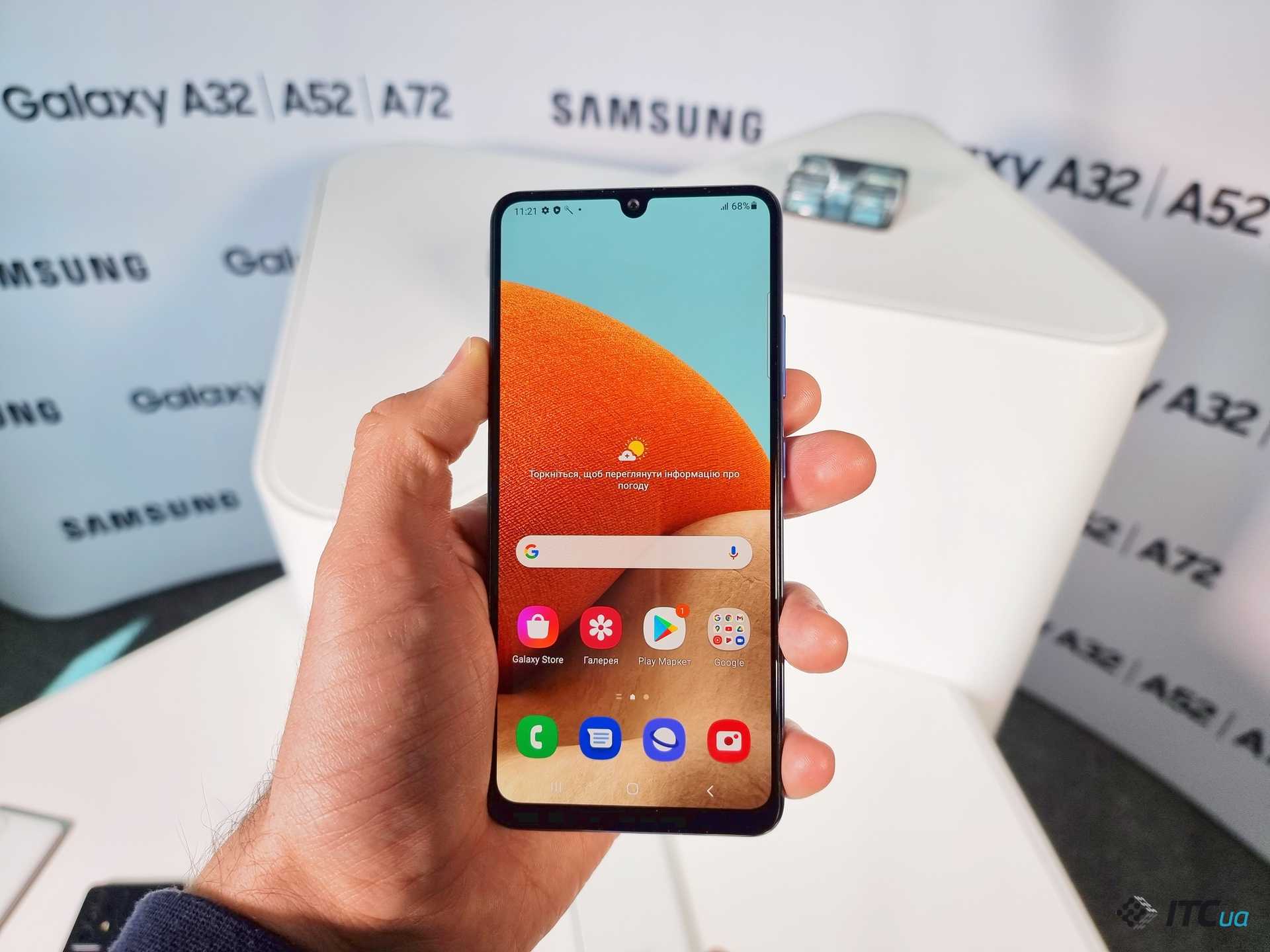 Данная модель не совсем новая, и была анонсирована компанией Samsung ещё в конце января, но в Украине она появится вместе со старшими версиями, так что, по сути, это её дебют. Galaxy A32 оснащается 6,4-дюймовым дисплеем и немного компактнее А52 и А72. Дизайн этого смартфона в целом сильно от них отличается, у него более крупные рамки вокруг экрана, а фронтальная камера расположена в каплевидном вырезе.