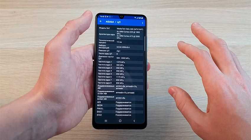 Этот телефон нельзя назвать особо мощным, однако установленное в нем «железо» и не предназначено для требовательных игр. Смартфон A32 оснащен процессором MediaTek Helio G80 (8 ядер частотой до 2 GHz) с графикой ARM Mali-G52 MC2. Объем оперативной памяти – 4 GB.
