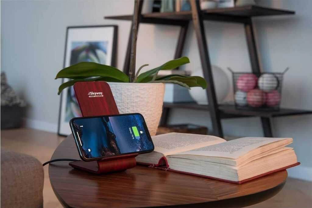 Зарядное устройство Skyway Energy Fast обладает интересным дизайном и мощностью 10 Вт. Поверхность станции выполнена в древесном стиле. Она предназначена для любых телефонов, поддерживающих стандарт Qi.