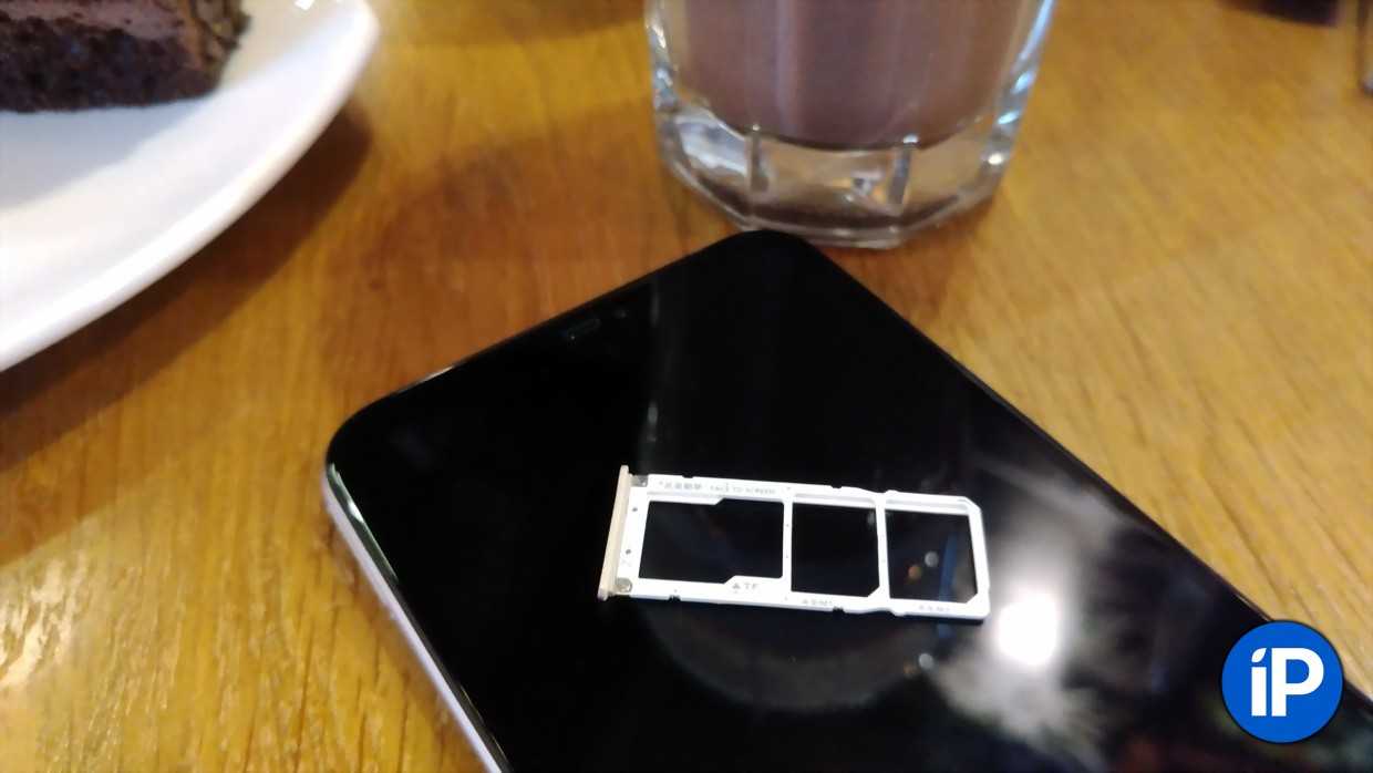 Лоток умещает 2 nanoSIM и microSD карту до 128 Гб