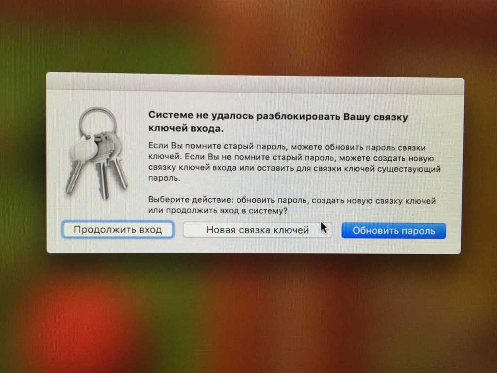 После сброса пароля у меня постоянно стало отображаться сообщение, связанное со «связкой ключей». Якобы этот пароль нужен для 4-5 служб. Сообщения об этом никак нельзя было закрыть и они открывались по кругу.