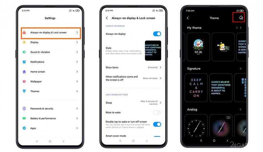 Чтобы включить AOD на телефонах Xiaomi, необходимо: